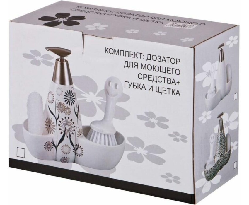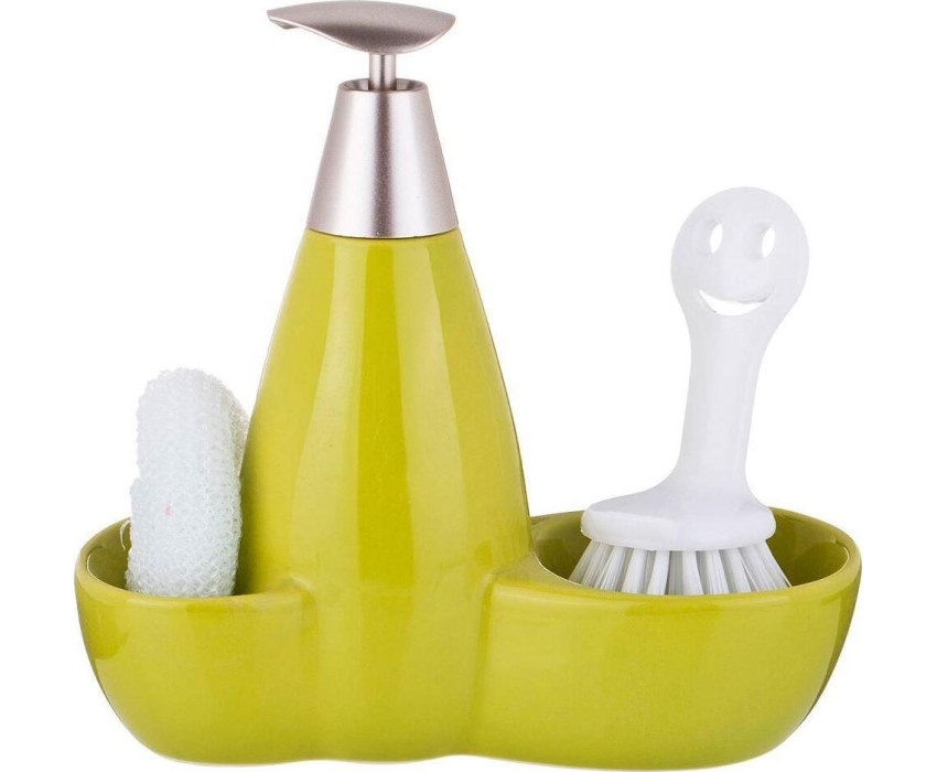 Дозатор LEFARD ДОЗАТОР ДЛЯ МОЮЩЕГО СРЕДСТВА "FRESH" 500 МЛ + ГУБКА И ЩЕТКА 20*9*18 СМ (КОР=12ШТ.) 755-021