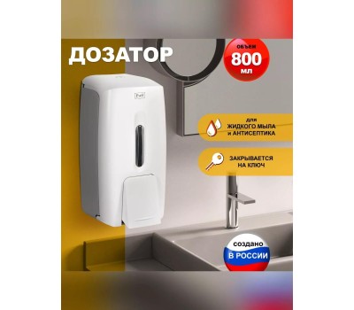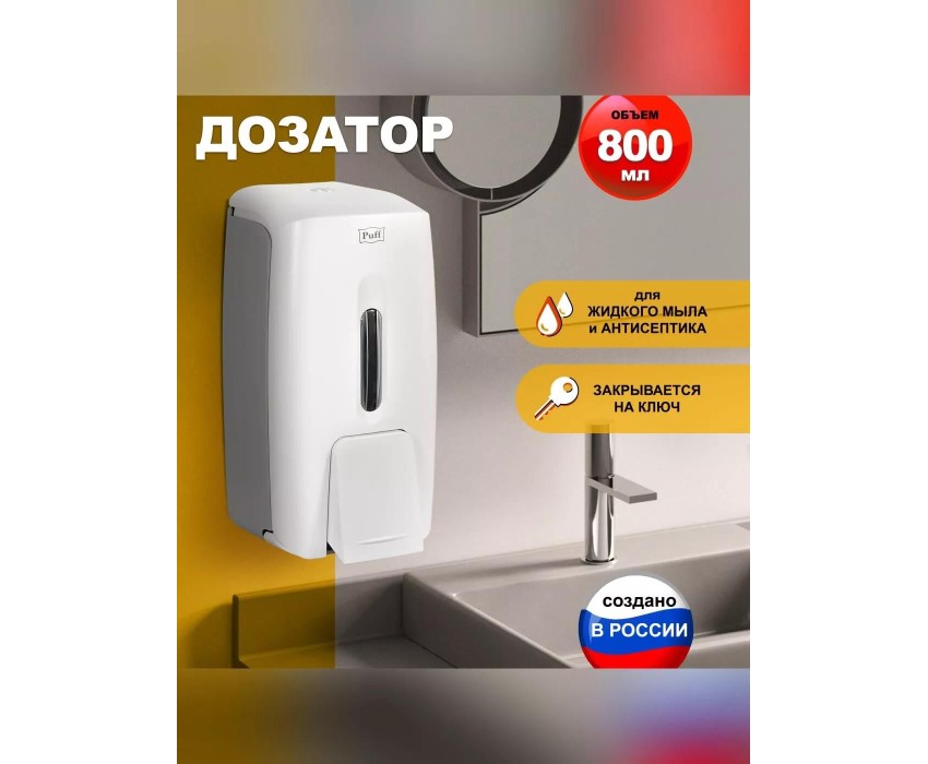Дозатор PUFF Дозатор для жидкого мыла пластик. -8120, белый,0,8 л