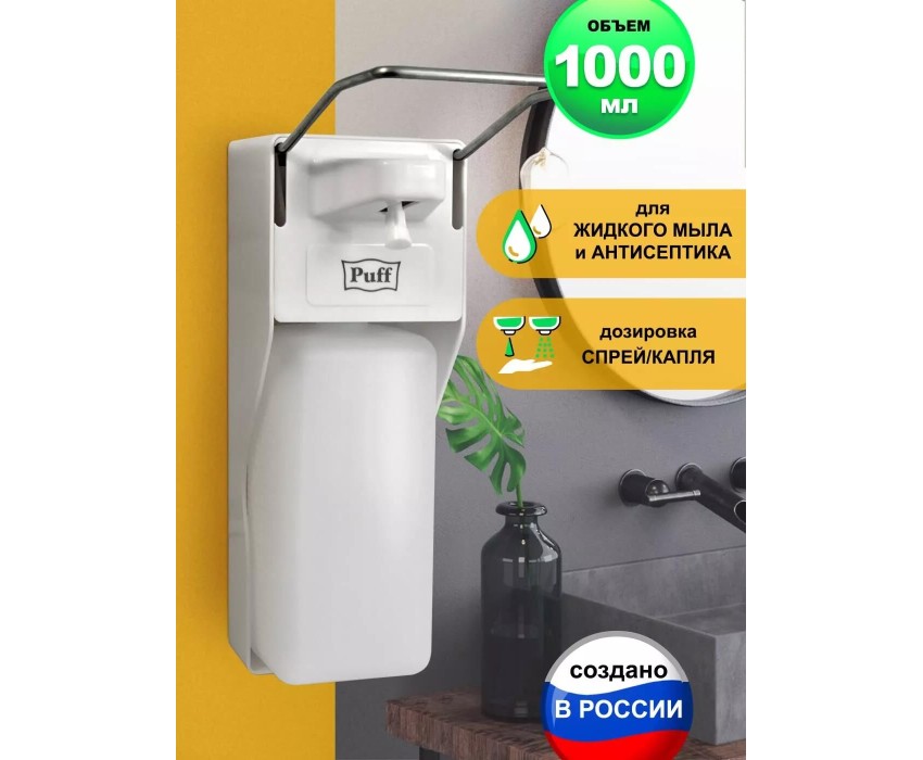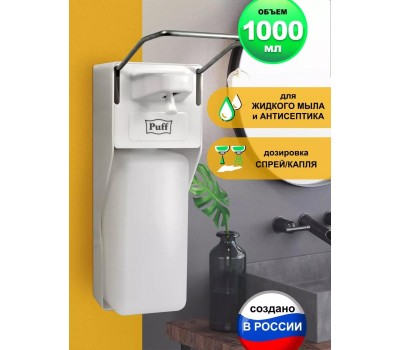 Дозатор PUFF Локтевой дозатор для жидкого мыла и дез. растворов, 1000 мл, -8197, пластиковый