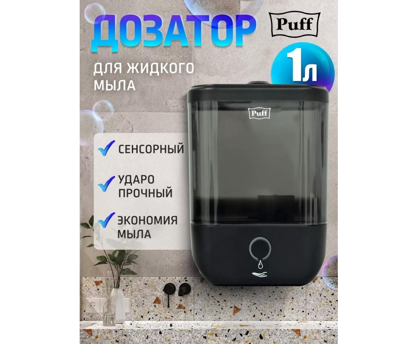 Дозатор PUFF Автоматический дозатор для жидкого мыла - 8190Bl, 1000мл, черный