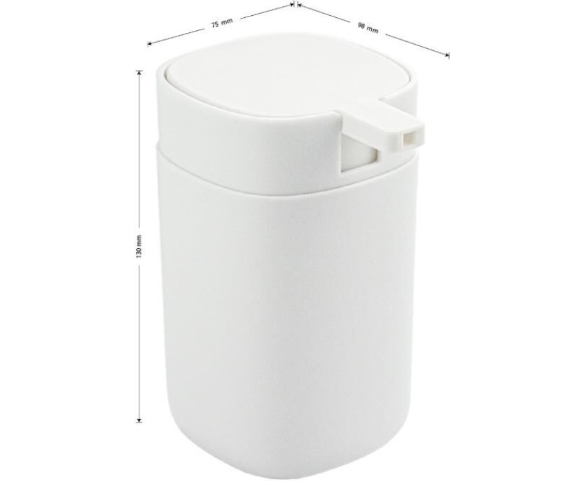 Дозатор для жидкого мыла настольный — необходимый аксессуар любой ванной комнаты и кухни. Приспособление обеспечит порядок и правильное хранение гигиенических принадлежностей. Изделие выполнено из пластика АБС с белым матовым покрытием. Такое сочетание материалов делает конструкцию прочной и долговечной. Гармоничный дизайн и белая расцветка отлично впишется в любой интерьер. Изделие имеет специальное покрытие, которое защищает его от влаги и придает ему дизайнерский внешний вид. В коллекции представлены: дозатор для мыла, мыльница, напольный ершик для унитаза, стакан для зубных щеток. Габаритные размеры: высота 130 мм, ширина 75 мм, глубина 98. Вес - 0,200 кг, объём - 0,00148 м3
