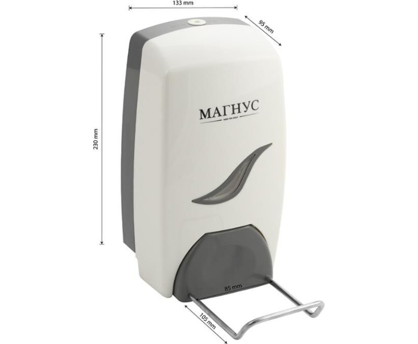 МАГНУС - Дозатор жидкого МЫЛА, ЛОКТЕВОЙ, пластик АБС, БЕЛЫЙ, 1000 мл 695