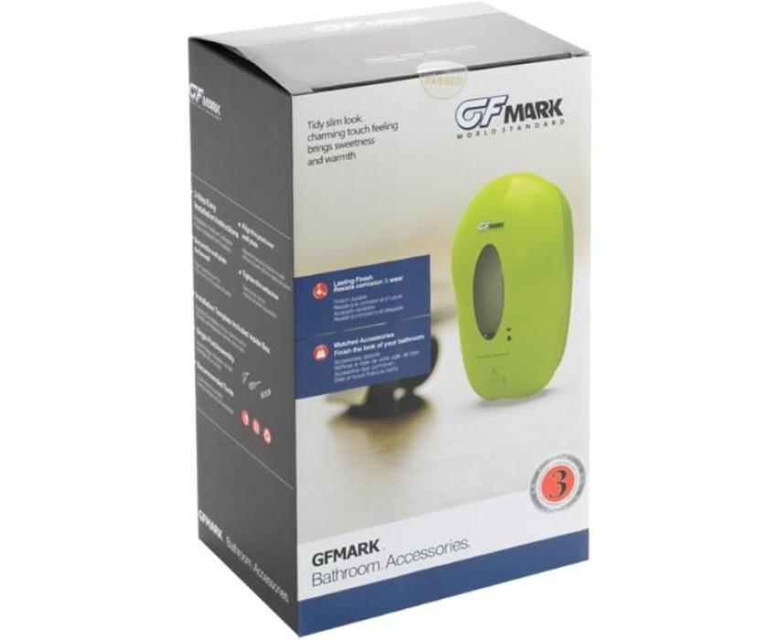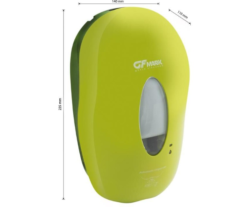 GFmark - Дозатор СЕНСОРНЫЙ, для жидкого МЫЛА , модель КОКОН с окошком, пластик АБС, САЛАТОВЫЙ, с датчиком объёма жидкости и уровня заряда батарей, 1000 мл 723