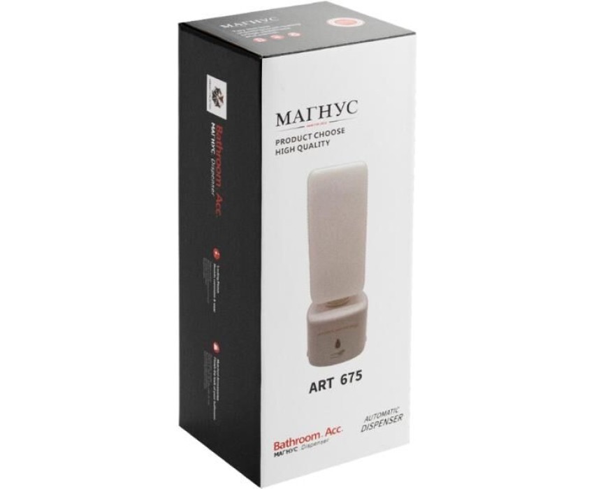 МАГНУС - Дозатор СЕНСОРНЫЙ, для жидкого МЫЛА, пластик АБС, БЕЛЫЙ, 1000 мл, питание 4АА 675