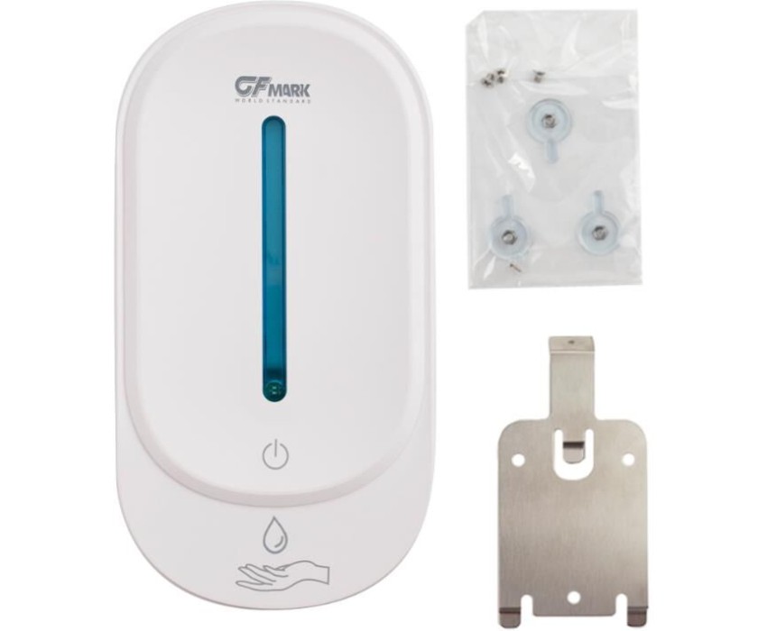 GFmark - Дозатор СЕНСОРНЫЙ, для жидкого МЫЛА, пластик АБС, БЕЛЫЙ, большой, с полоской, 350 мл, питание 4АА 676