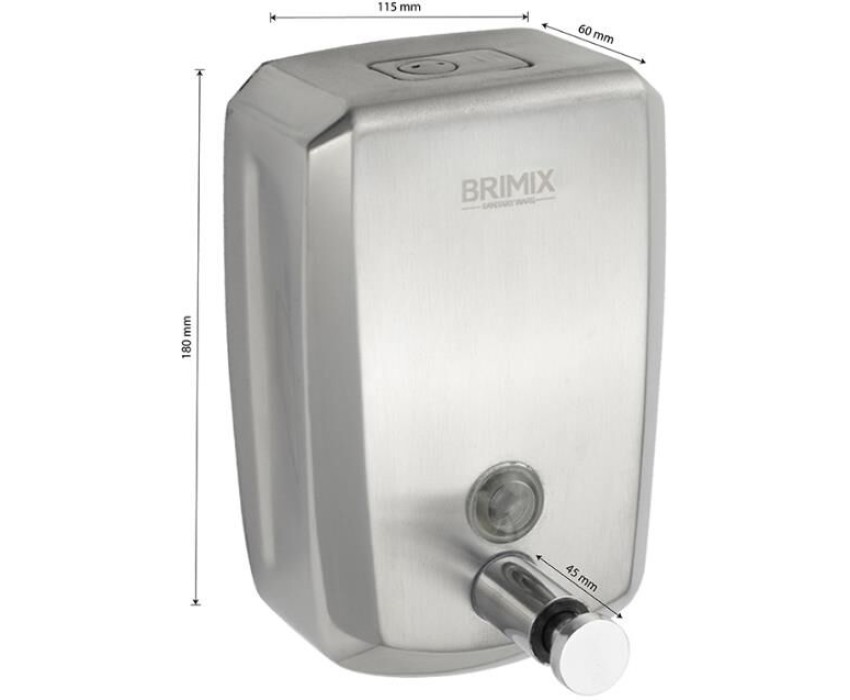 BRIMIX - Дозатор жидкого мыла настенный, металлический, с глазком, из нержавеющей стали марки 201, на 800 мл, сатин 644