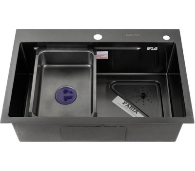 FABIA ПРОФИ - Мойка врезная 68х45 см, ГРАФИТ, толщина 3,0 х 0,9 мм, глубина 200 мм + большой УГЛОВОЙ сифон с переливом + корзина + врезка для дозатора 68453G