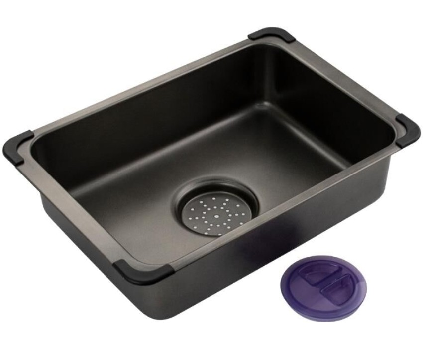 Мойка врезная, графит, большой сифон с переливом. Сифон с углубленной горловиной, мусоросборником и крышкой. Врезная кухонная мойка произведена из премиальной нержавеющей стали, обладает повышенной прочностью. Особенность мойки заключается в конструкции ее дна, имеющего небольшой уклон. Благодаря такой особенности, вода быстрее уходит в слив, не застаивается, что способствует поддержанию гигиеничности в чаше. Скругленные внутренние углы облегчают уход за мойкой, препятствуют скоплению частичек грязи. Тихой в использовании, мойку делает шумоизолирующее покрытие и накладки с обратной стороны мойки. В комплект входит универсальная раздвижная корзина, сифон, мойка, крепёж. Габаритные размеры: ширина 680 мм, длина 450 мм, глубина 200 мм, корзина 250*360 мм, толщина основания 3,0 мм, чаша 0,8 мм. Вес - 9,500 кг, объём - 0,08000 м3.