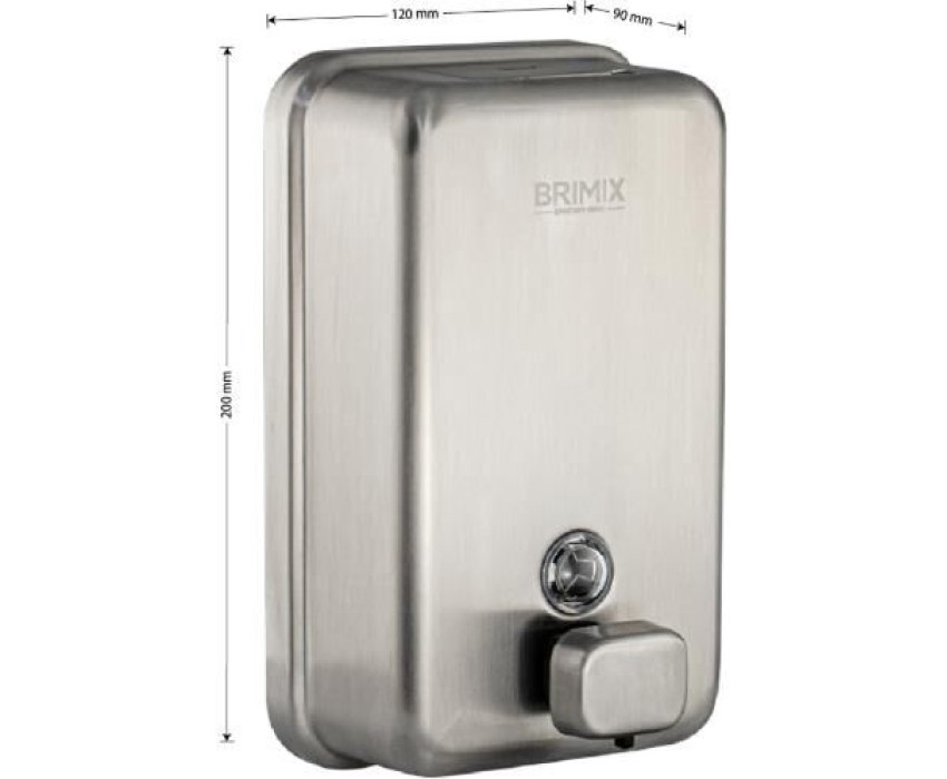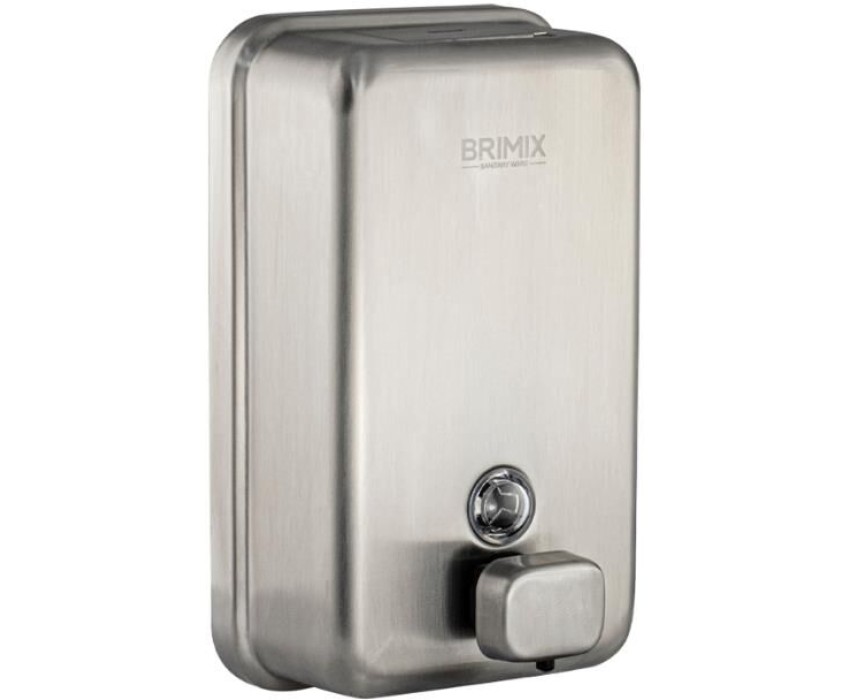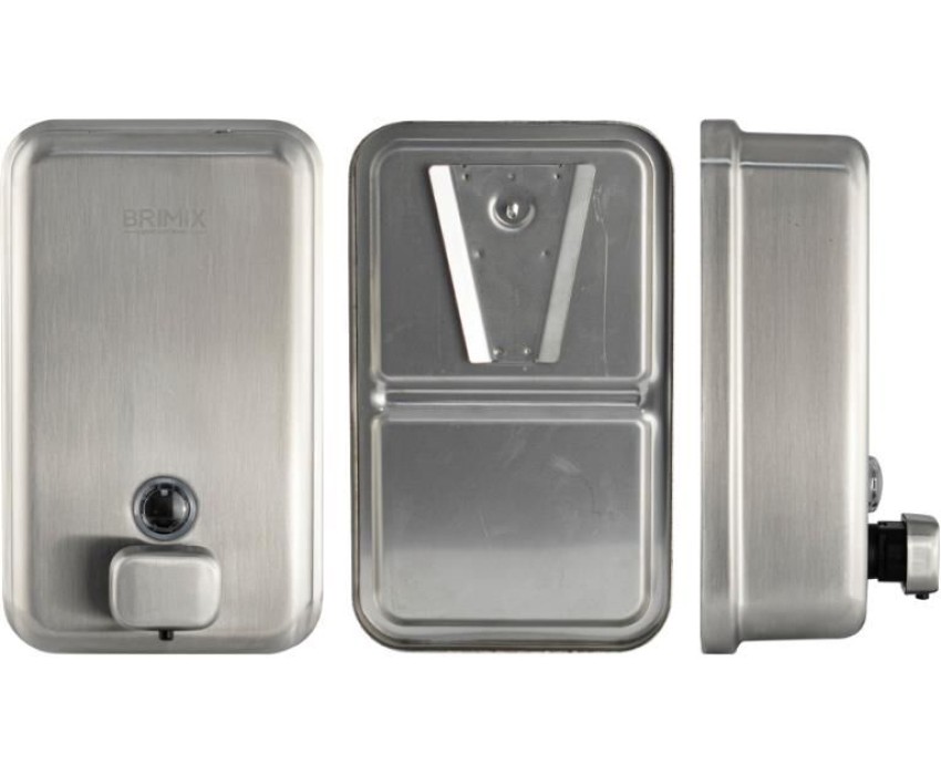 BRIMIX - Дозатор для жидкого мыла 1000 мл, настенный, прямоугольный корпус с глазком, из нержавеющей стали марки SUS 304, цвет САТИН. 616K