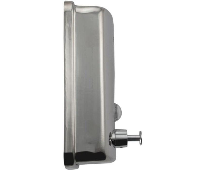 Механический дозатор для жидкого мыла хромированный, предназначен для установки в любых санитарно-гигиенических комнатах.Дозатор прост в эксплуатации, достаточно нажать на кнопку для получения порции средства. Для удобства контроля за уровнем мыла на лицевой поверхности есть смотровое окно. Корпус диспенсера изготовлен из нержавеющей стали марки 304, который выдерживает различные механические воздействия. В резервуар емкостью 800 мл можно заливать как жидкое мыло, так и прочие средства. Разместив диспенсер на стене, достаточно время от времени проверять заполненность резервуара. Иного ухода он не требует, не нуждается в замене батареек. Это отличное решение как для частных владений, так и для гостиниц, кафе, столовых и прочих общественных мест. Габаритные размеры: высота 180 мм, ширина 105 мм, глубина 85 мм. Вес - 0.42 кг, объем - 0.00269 м3.