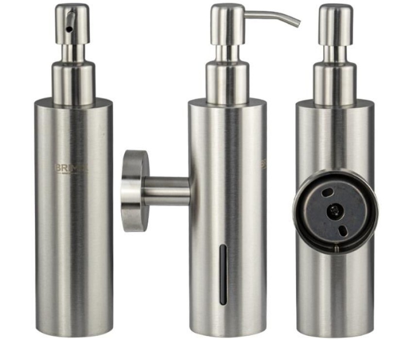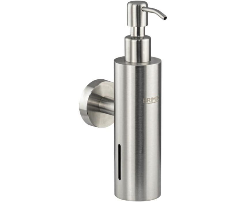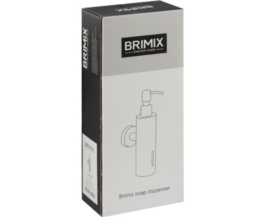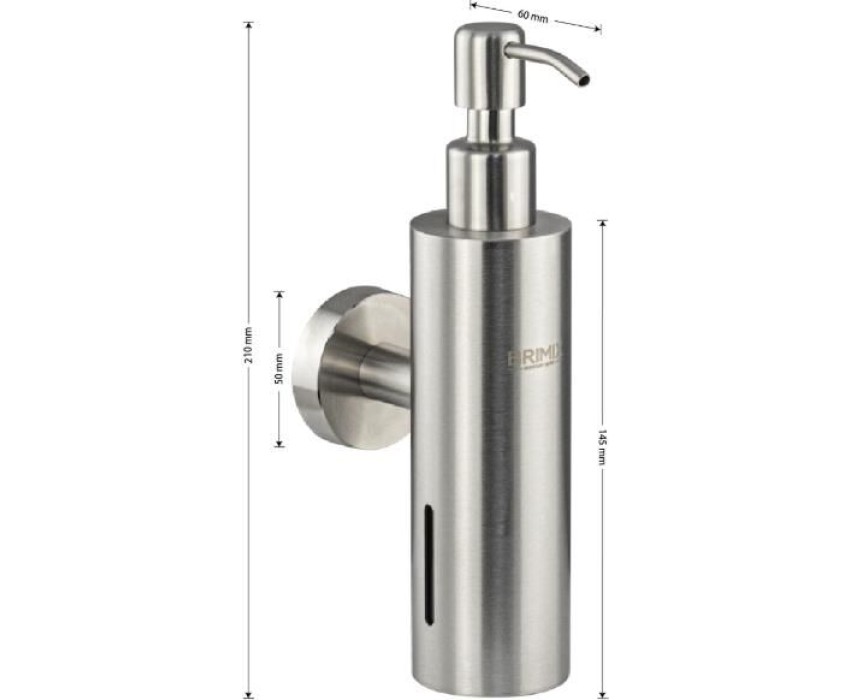 BRIMIX - Дозатор для жидкого мыла настенный, антивандальный, 250 мл, цилиндрический корпус, из нержавеющей стали SUS 304, цвет САТИН. 22088