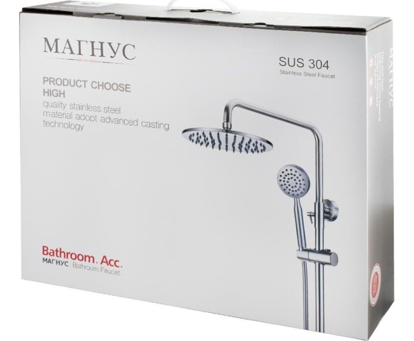 Душевой комплект MAGNUS 9238 Смеситель+стойка душевая тропический душ металлокерамика, с двумя лейками из нержавеющей стали марка 304