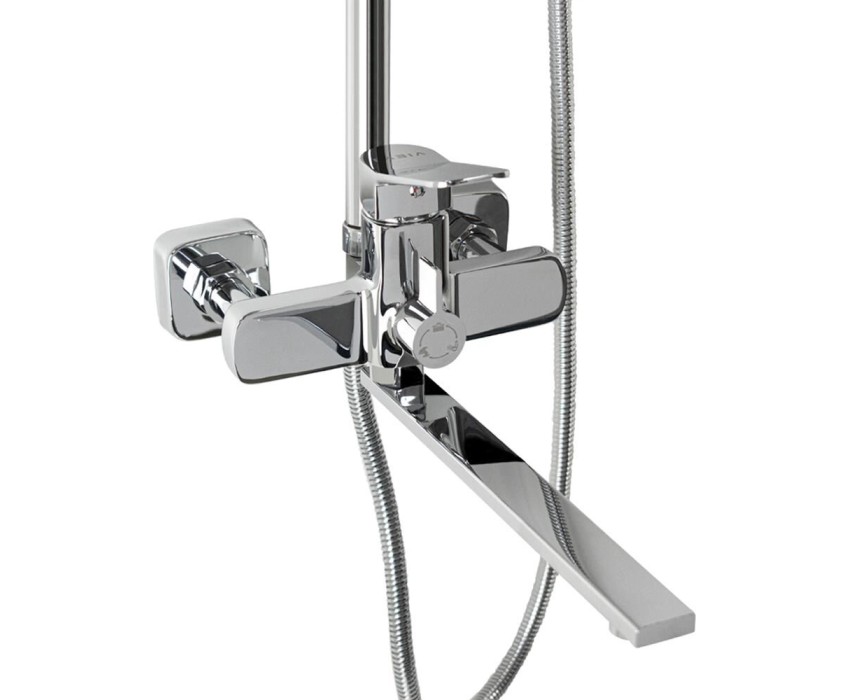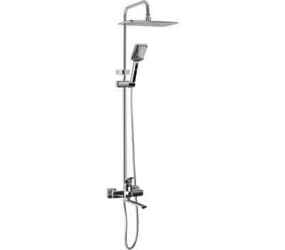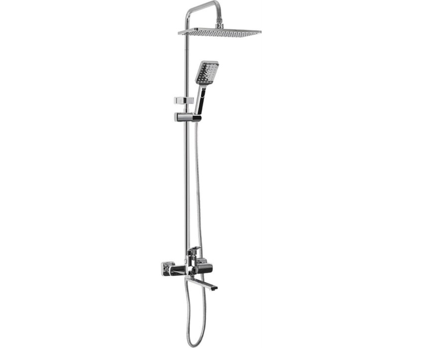 Смеситель для ванны и душа FABIA 9675 Смеситель + стойка душевая тропический душ хромированный, с двумя лейками, с длинным изливом, корпус латунь