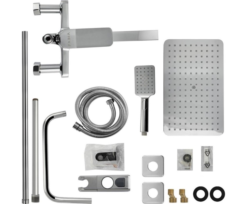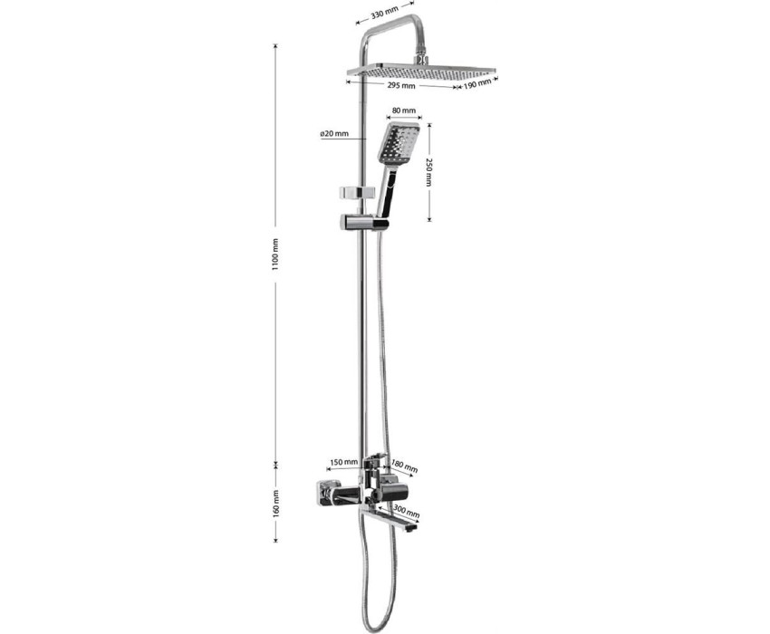 Смеситель + стойка душевая телескопическая "тропический душ" с двумя лейками в ванную / душевую комнату, хромированный. Смеситель шаровый с длинным поворотным изливом, душевым шлангом и лейкой, дивертор переключения в трёх положениях. Материал изготовления — латунь. Картридж d = 40 мм, ручка литая, аэратор для экономии воды, чашки и эксцентрики. Душевая, регулируемая по высоте стойка с присоединением к корпусу смесителя и дополнительным креплением к стене и большой круглой лейкой с эффектом тропического душа. Габаритные размеры: ширина смесителя 150 мм, высота мм, длина излива корпуса мм, высота телескопической стойки мм, длина излива стойки мм, круглая душевая лейка мм, круглая лейка тропический душ 255*80 мм, шланг 150 см. Вес - 4,65 кг, объём - 0,02847 м3. В комплекте корпус с изливом, чашки, эксцентрики, прокладки, стойка, дивертор, шланг, две лейки, крепления.