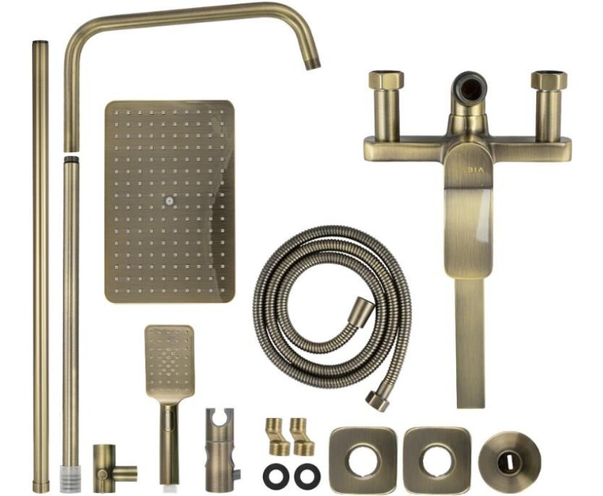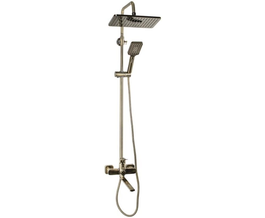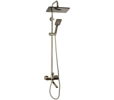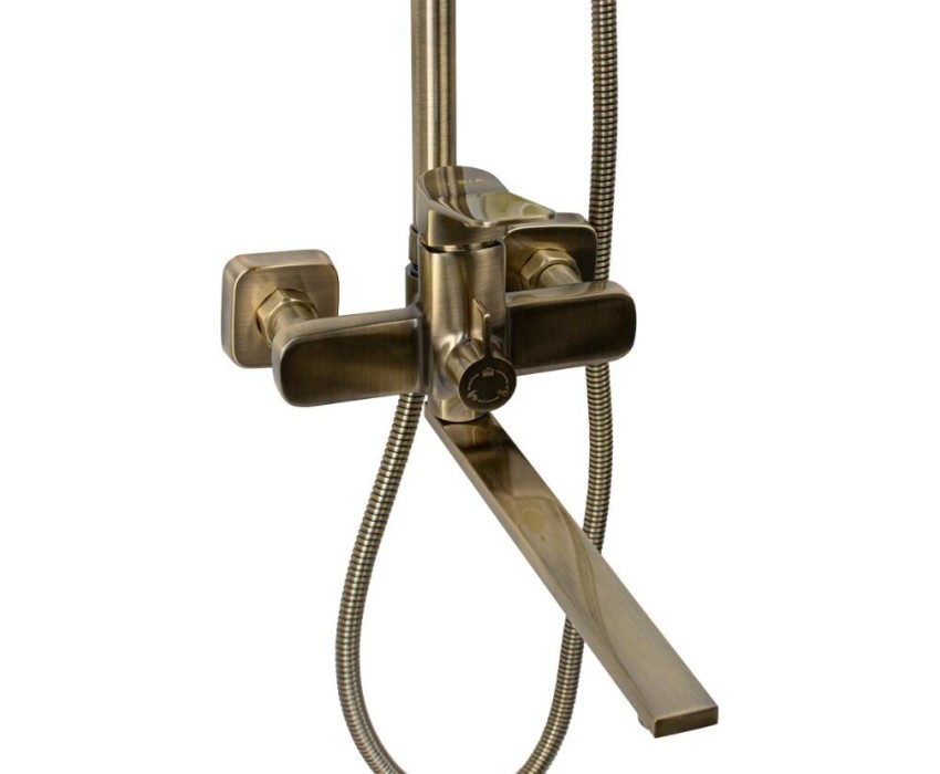 FABIA - Смеситель + стойка душевая "тропический душ", с двумя лейками, с длинным изливом, цвет БРОНЗА. 9877