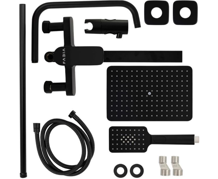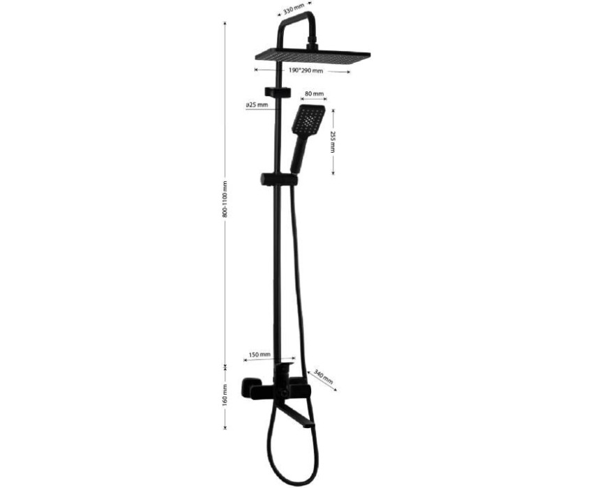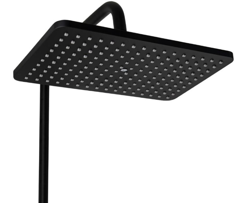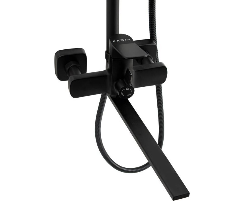 FABIA - Смеситель + стойка душевая "тропический душ", с двумя лейками, с длинным изливом, цвет ЧЕРНЫЙ. 9775