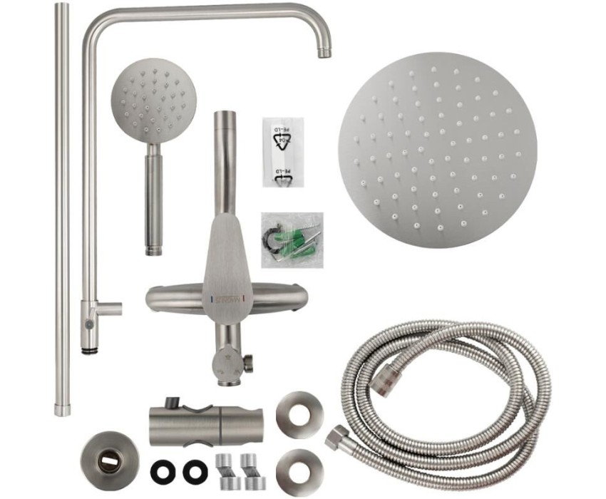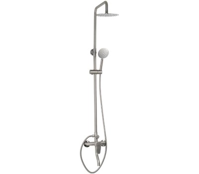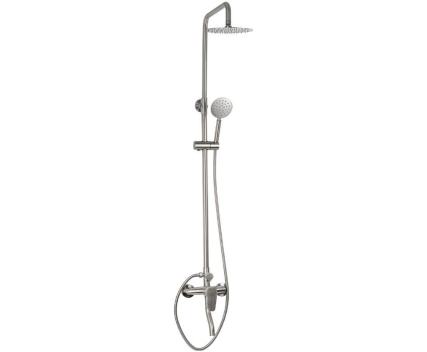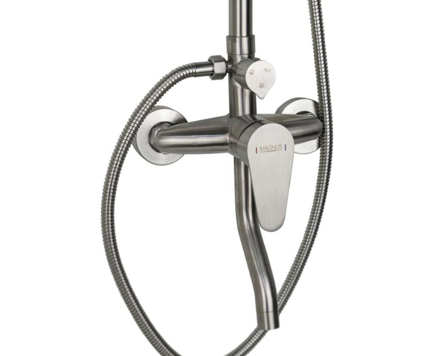 МАГНУС - Смеситель + стойка душевая "тропический душ", с двумя круглыми лейками, из нержавеющей стали марки SUS 304, цвет САТИН. 9430