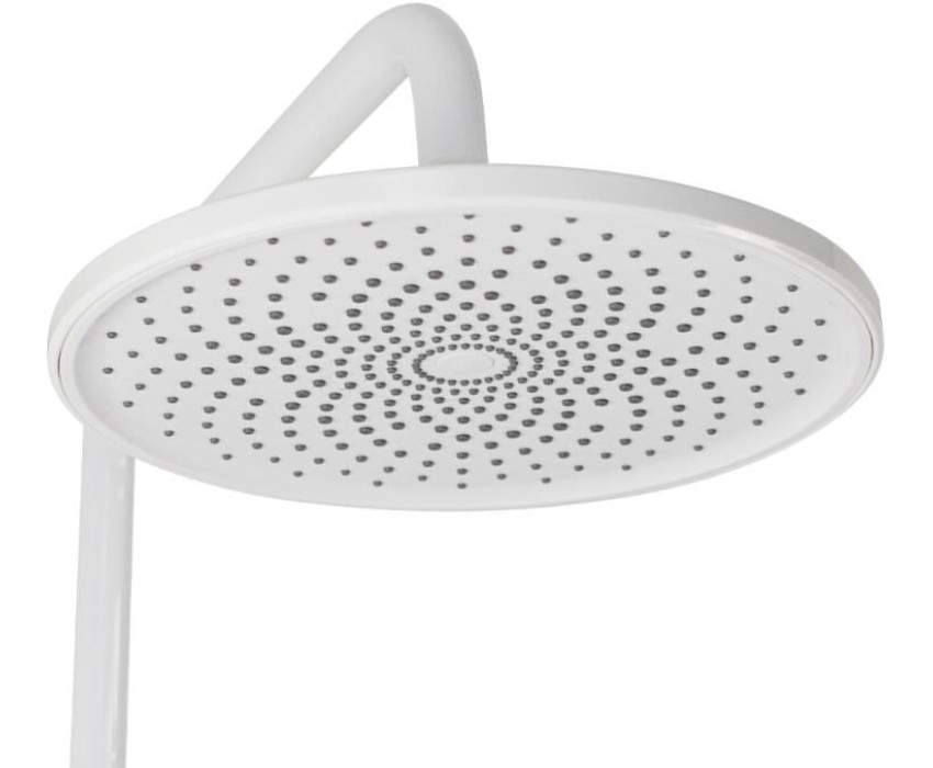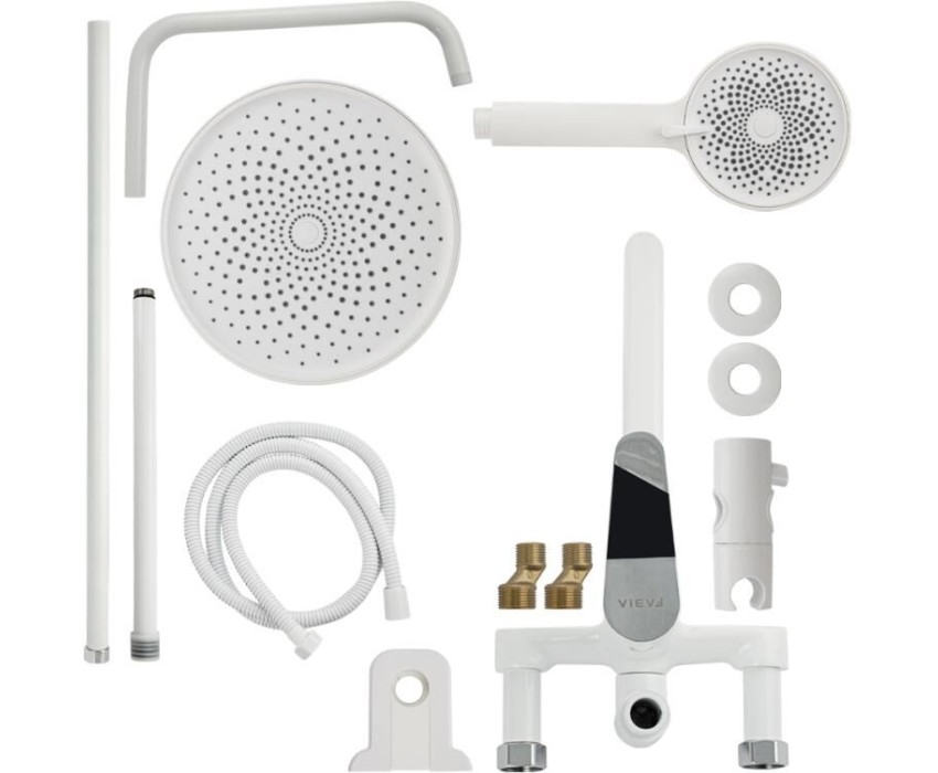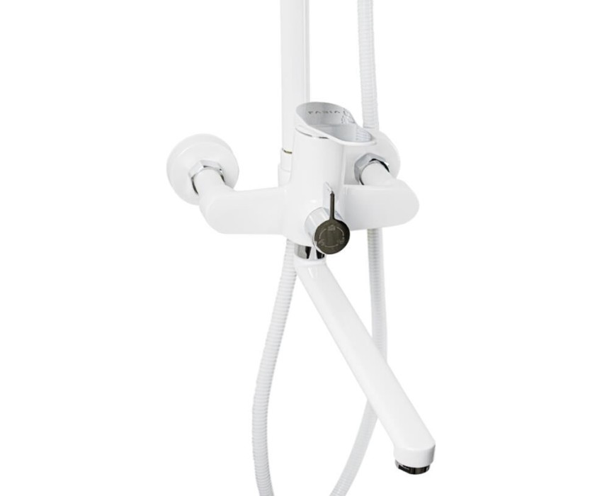 FABIA - Смеситель + стойка душевая "тропический душ", с двумя лейками, с длинным изливом, цвет ХРОМ + БЕЛАЯ ЭМАЛЬ. 9677