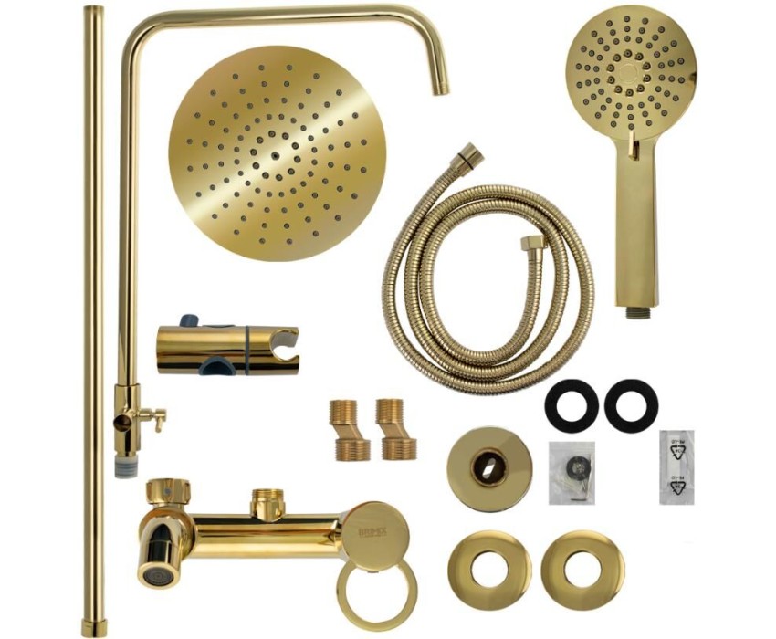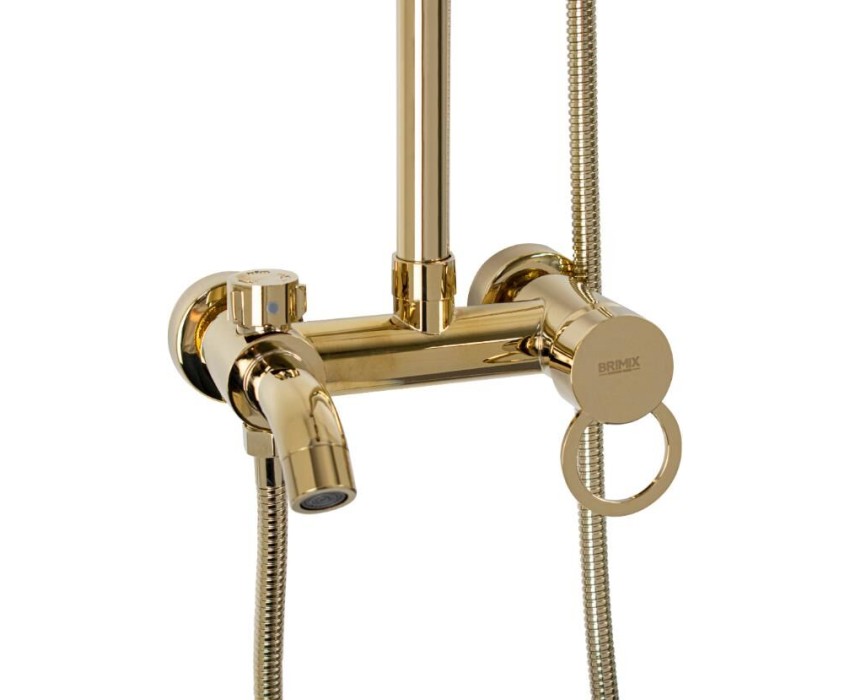BRIMIX - Смеситель + стойка душевая "тропический душ" с двумя круглыми лейками, латунный корпус, цвет ЗОЛОТО. 3056