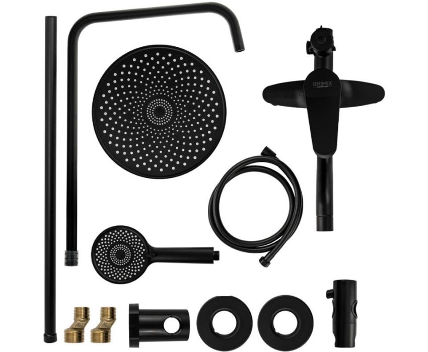 BRIMIX - Смеситель + стойка душевая "тропический душ" с двумя лейками, корпус АБС пластик, цвет ЧЕРНЫЙ. 3055