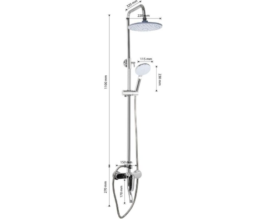 МАК - Смеситель + стойка душевая "тропический душ" с двумя лейками 3066