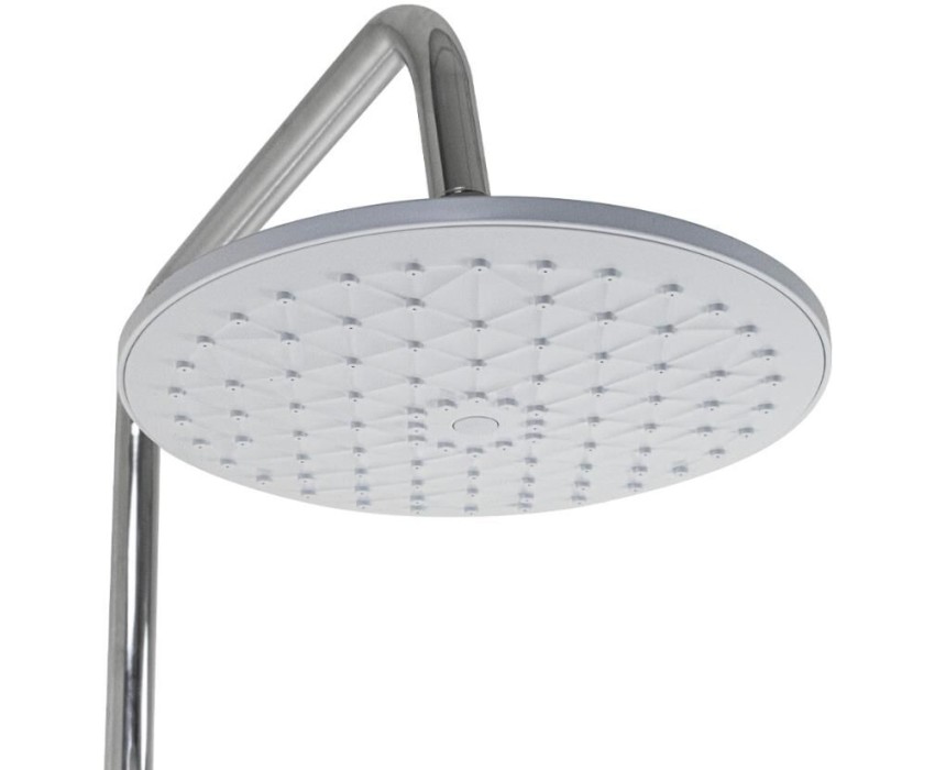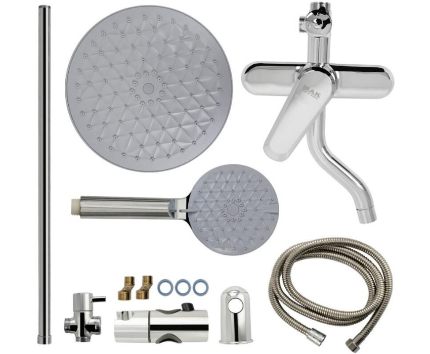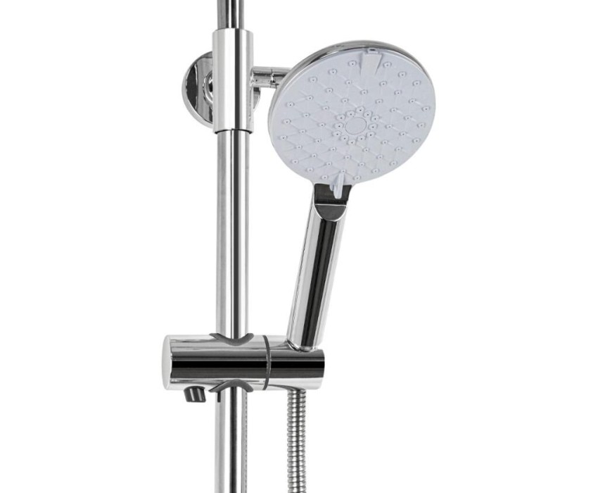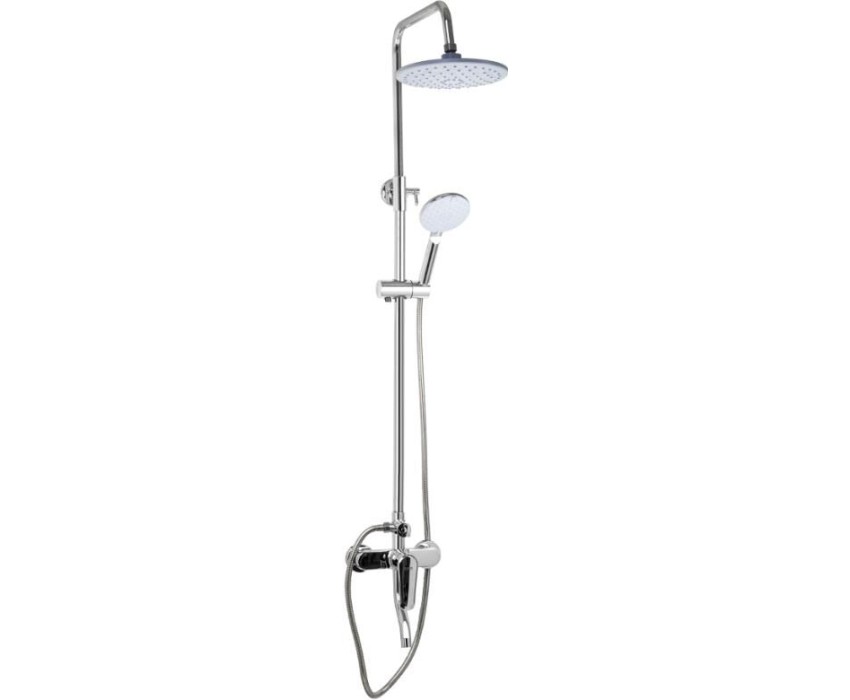 Смеситель + стойка душевая телескопическая "тропический душ" с двумя лейками в ванную и душевую комнату, цвет чёрный. Смеситель шаровый с коротким поворотным изливом, душевым шлангом и лейкой, дивертор переключения в трёх положениях. Картридж d = 35 мм, ручка литая, аэратор для экономии воды, чашки и эксцентрики. Душевая, регулируемая по высоте стойка с присоединением к корпусу смесителя и дополнительным креплением к стене и большой круглой лейкой с эффектом тропического душа. Габаритные размеры: ширина смесителя 150 мм, высота 270 мм, длина излива корпуса 170 мм, высота телескопической стойки 1100 мм, длина излива стойки 320 мм, круглая трёхрежимная душевая лейка d = 115 мм, круглая лейка тропический душ d = 220 мм, шланг 150 см. Вес - 2.500 кг, объём - 0,0357 м3. В комплекте корпус с изливом, чашки, эксцентрики, прокладки, стойка, дивертор пластик, шланг, две лейки, крепления.