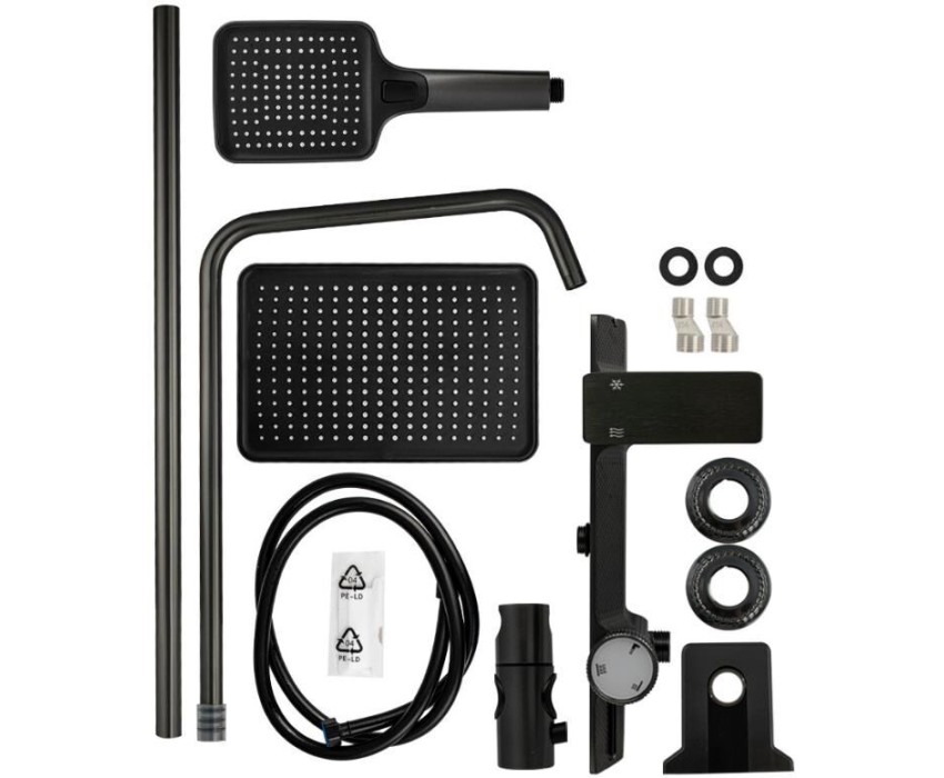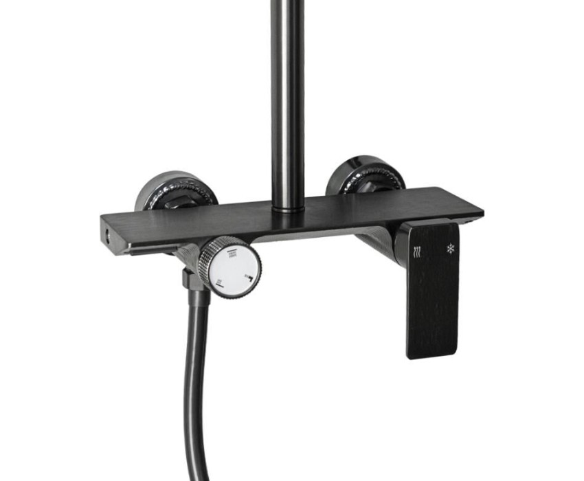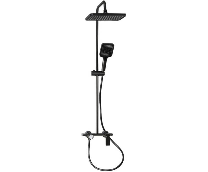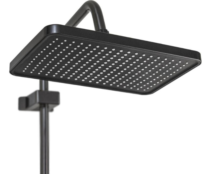 BRIMIX - Смеситель + стойка душевая "тропический душ" с двумя лейками, прямоугольный алюминиевый корпус, цвет ГРАФИТ. 88707