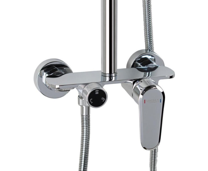 МАГНУС - Смеситель + стойка душевая "тропический душ" с двумя лейками, литой корпус, цвет ХРОМ. 8875