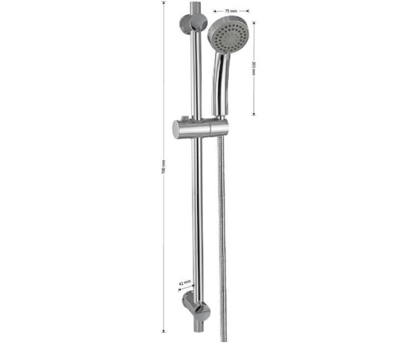 МАГНУС - Стойка душевая, с душевым шлангом и лейкой, с нажимным фиксатором, из нержавеющей стали марки 304, цвет ХРОМ. 9288