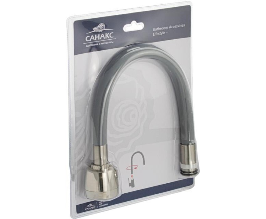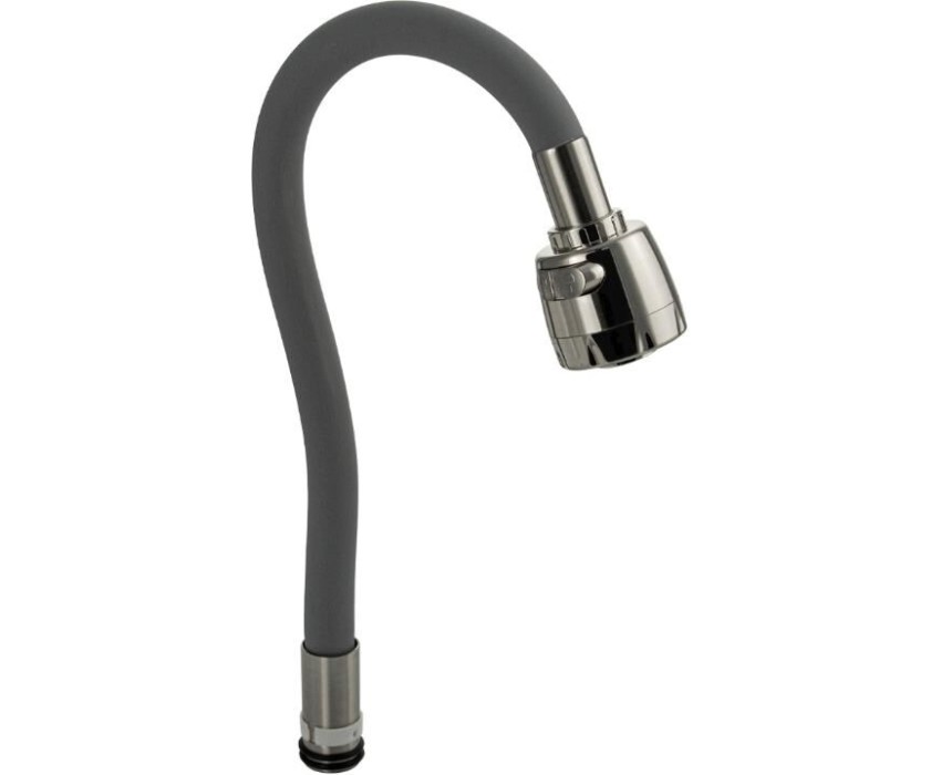 САНАКС - Излив к смесителю на кухню, ГИБКИЙ с большим двухрежимным аэратором, из нержавеющей стали, в силиконовой оболочке, БЕЗ ГАЙКИ, цвет СЕРЫЙ. 10719