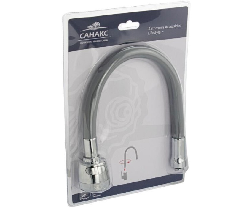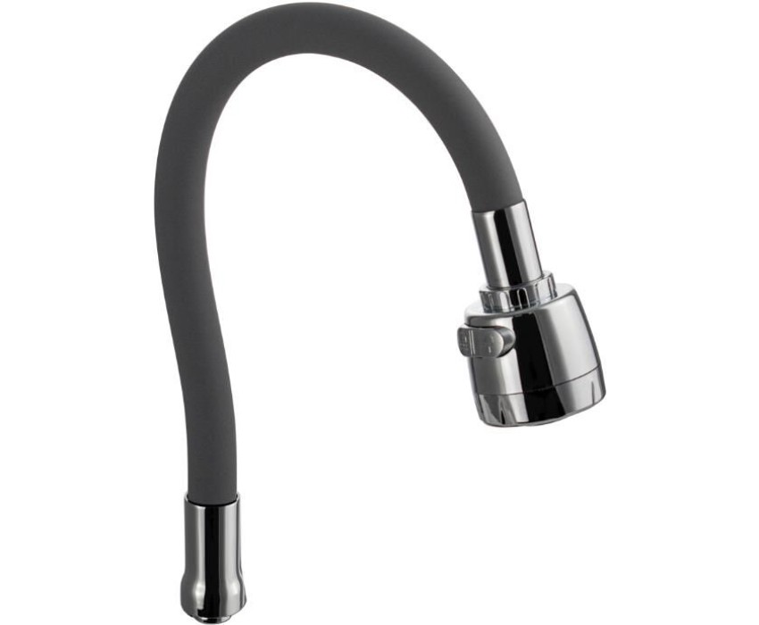 САНАКС - Излив к смесителю на кухню, ГИБКИЙ с большим двухрежимным аэратором, из нержавеющей стали, в силиконовой оболочке, С ГАЙКОЙ, цвет СЕРЫЙ. 10721