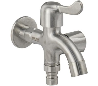 МАГНУС - Кран водоразборный 1/2", металлокерамика, с двойным выходом, из нержавеющей стали марки SUS 304, цвет САТИН. 9260
