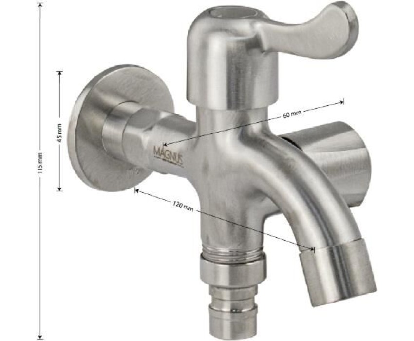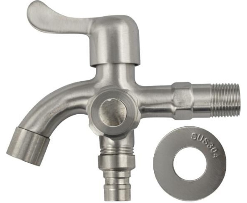 Кран водоразборный на 1/2", наружняя резьба, из нержавеющей стали марки SUS 304, с двойным выходом, металлокерамика, ручка флажок поворот на 90˚. Такая модель может использоваться на домашней кухне, на даче, в медицинских учреждениях и общественных местах. Габаритные размеры: высота 115 мм, длина 120 мм, диаметр посадочного седла 45 мм. Вес - 0,45 кг, объём - 0,00128 м3.