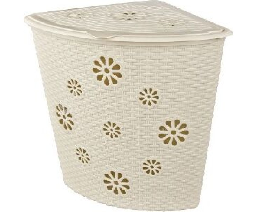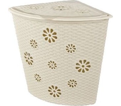 Угловая корзина изготовлена из прочного пластика и отлично подойдет для хранения белья перед стиркой. Данное изделие оснащено крышкой, что поможет скрыть содержимое корзины. Стенки корзины имитированы под плетение с небольшими отверстиями в форме цветов, которые создают идеальные условия для проветривания. Удобная и компактная корзина прекрасно впишется в интерьер любой ванной комнаты. Вес 1.466 кг. Размеры изделия (ДхШхВ) 385х500х460 мм.