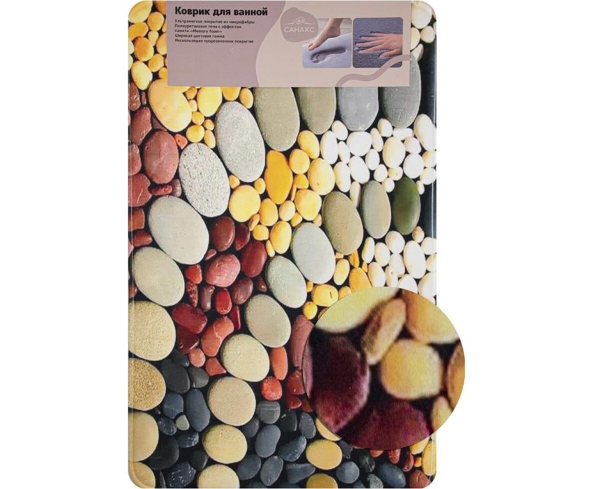 Коврик для ванной САНАКС 00440 Коврик в ванную ПАМЯТЬ - эффект восстановления, одинарный, дизайнерский - камни 50 х 80 см