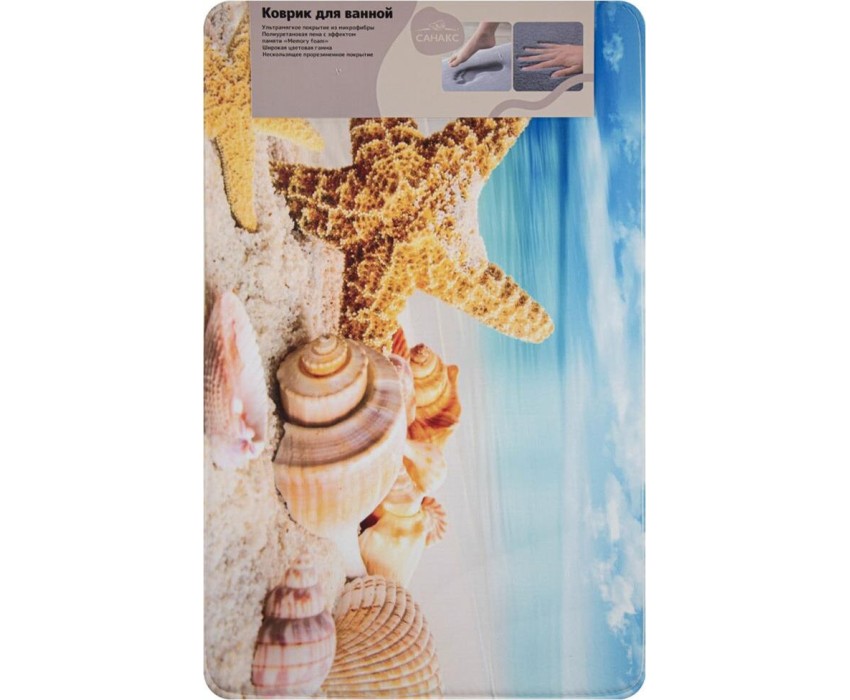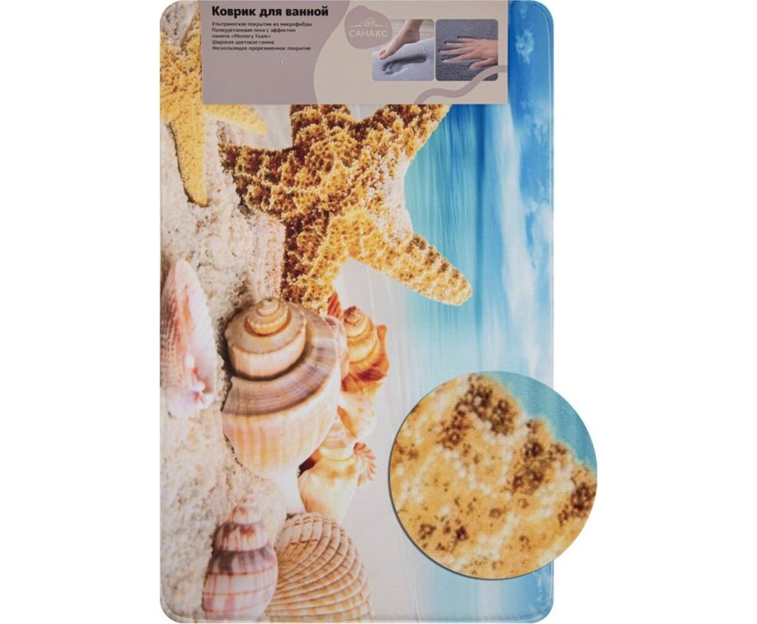 Коврик для ванной САНАКС 00441 Коврик в ванную ПАМЯТЬ - эффект восстановления, одинарный, дизайнерский - ракушки 50 х 80 см