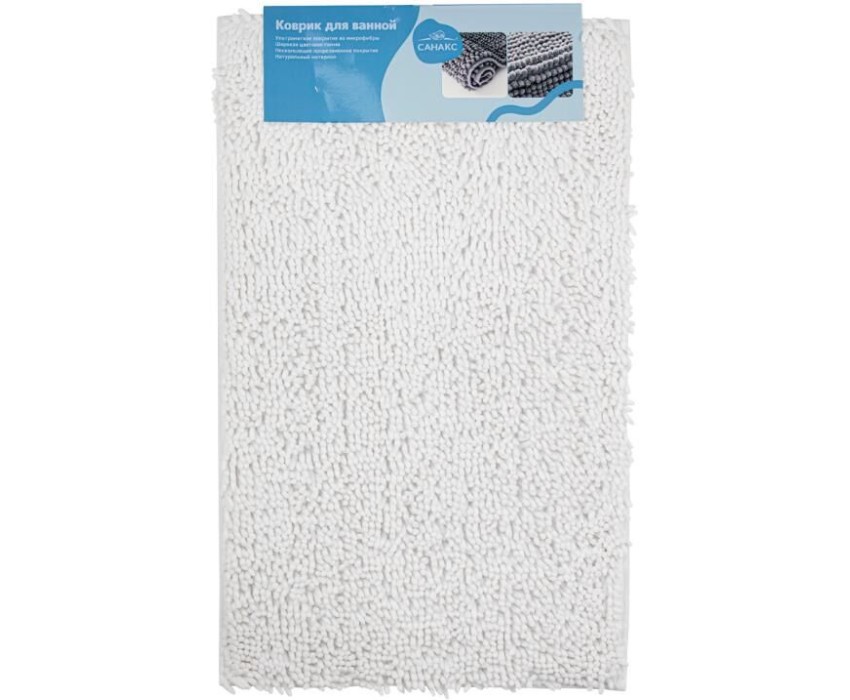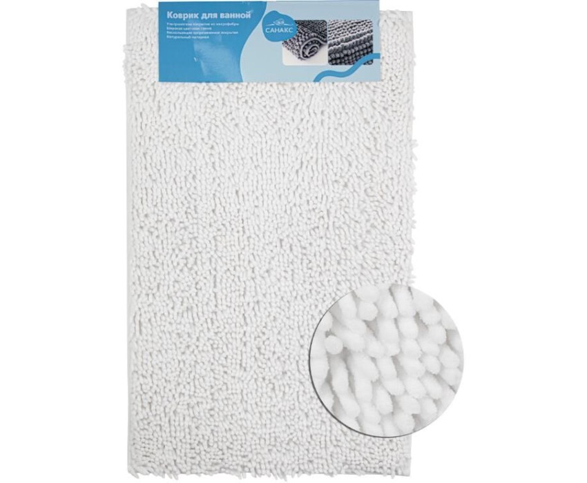 САНАКС - Коврик в ванную МОСС, одинарный, БЕЛЫЙ, 50 х 80 см, 100% хлопок, ворс 20 мм 00409
