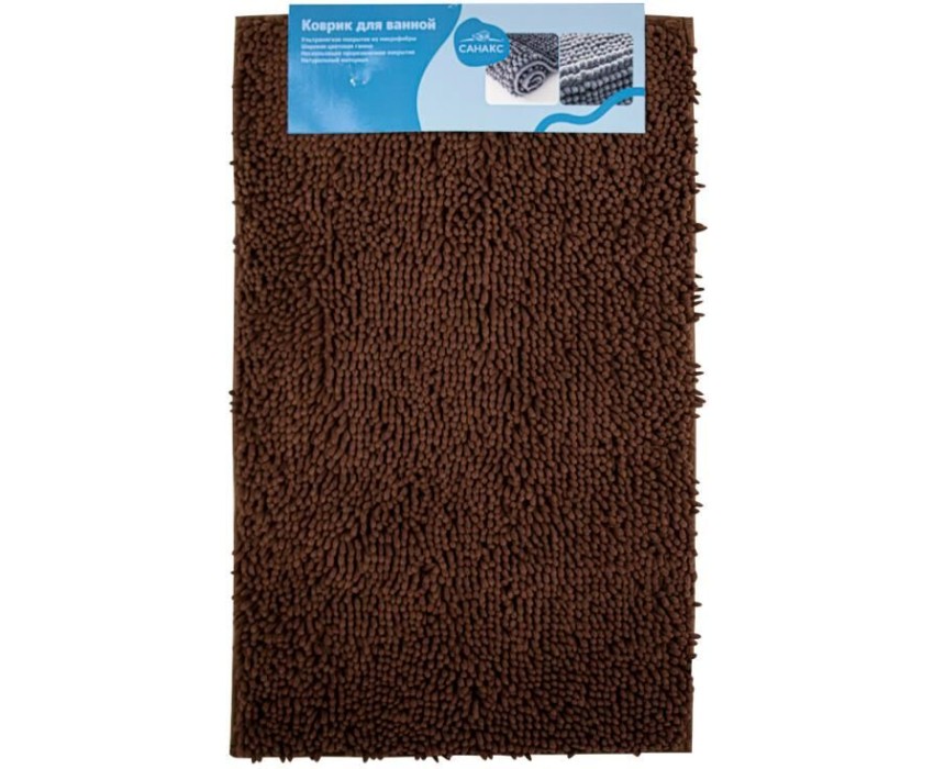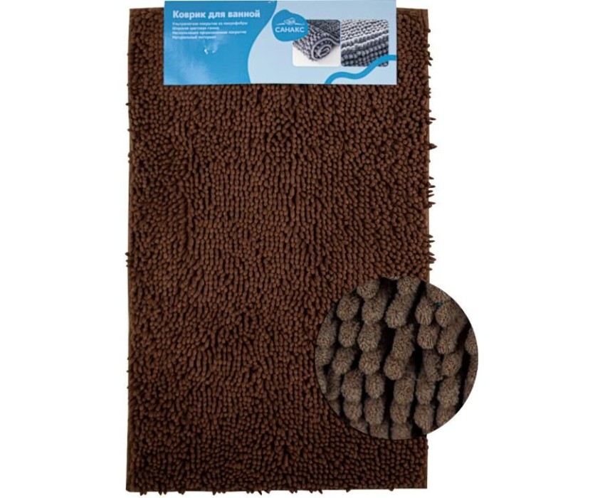 САНАКС - Коврик в ванную МОСС, одинарный, коричневый, 50 х 80 см, 100% хлопок, ворс 20 мм 00411