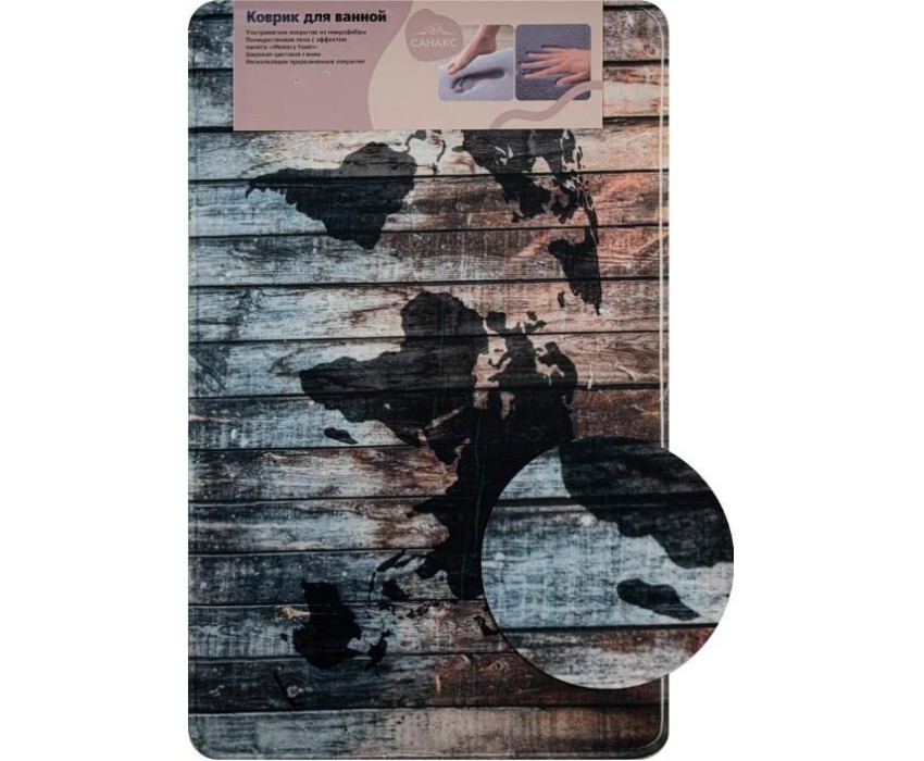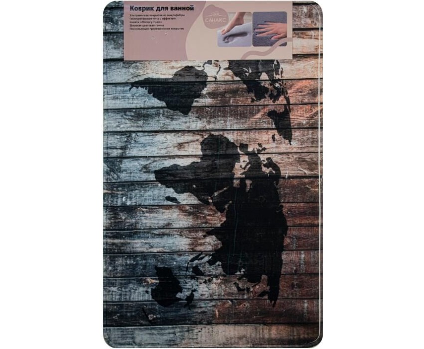 САНАКС - Коврик в ванную ПАМЯТЬ - эффект восстановления, одинарный, дизайнерский - карта мира 50 х 80 см 00437