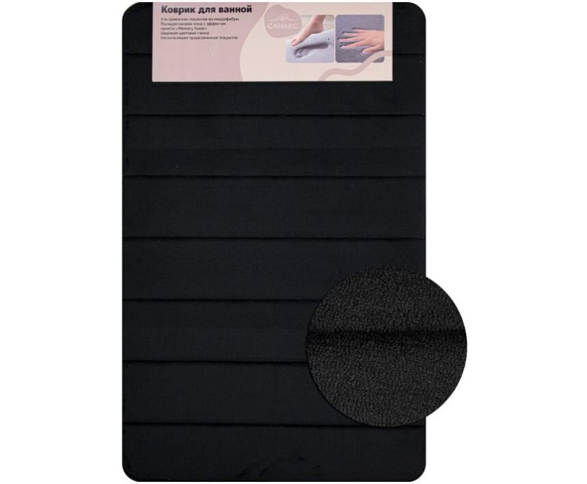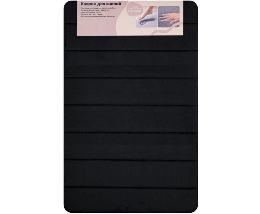 САНАКС - Коврик в ванную ПАМЯТЬ с эффектом восстановления, одинарный черный 50 х 80 см 00435