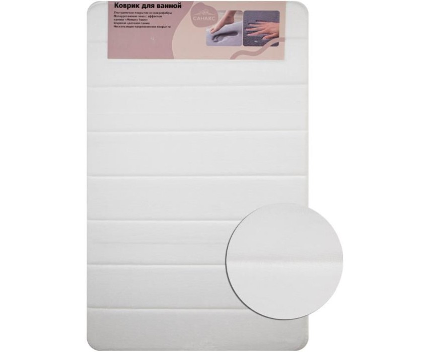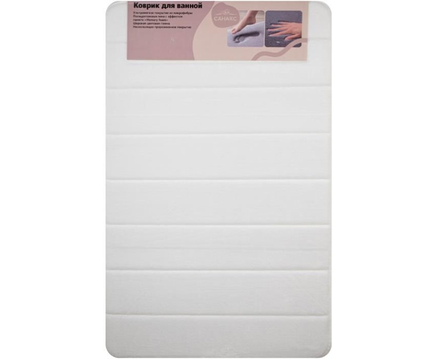 САНАКС - Коврик в ванную ПАМЯТЬ с эффектом восстановления одинарный БЕЛЫЙ 50 х 80 см 00430