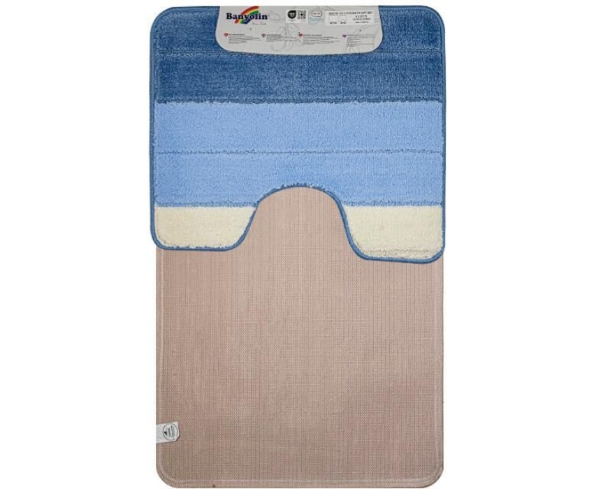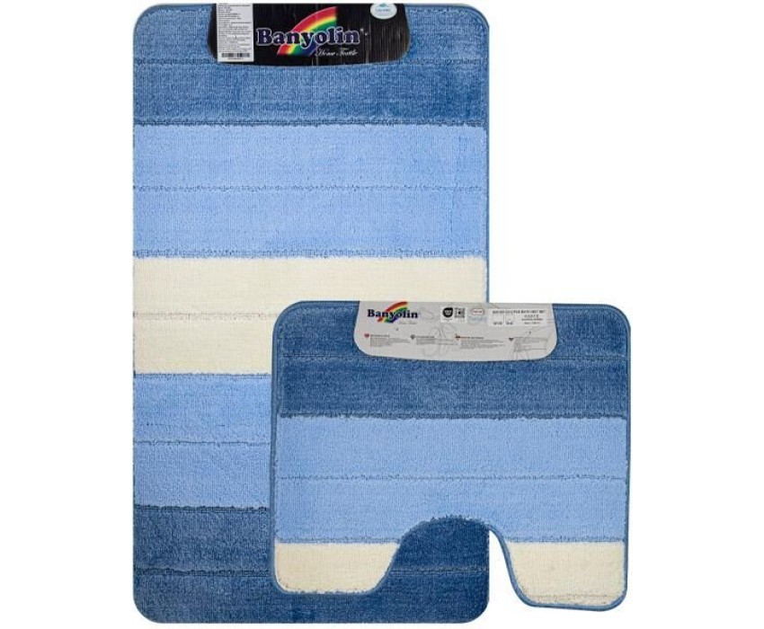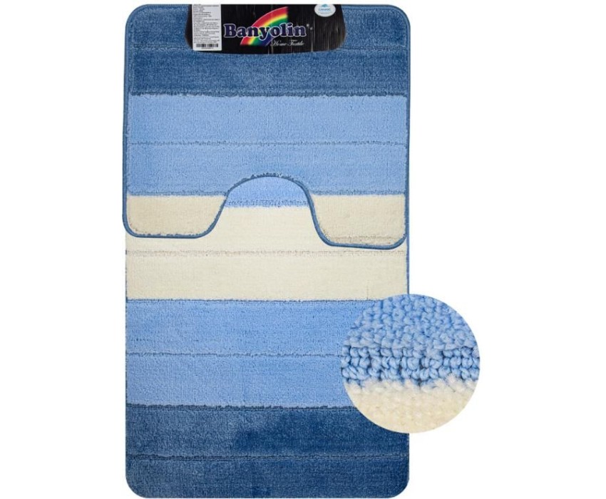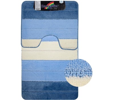 САНАКС - Коврик в ванную СИЛЬВЕР двойной, СИНИЙ, полосы, 60х100 + 50х60 см, 100% полиэстер. 00203