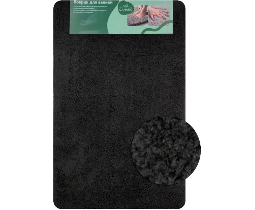 САНАКС - Коврик в ванную СТАНДАРТ, одинарный, черный, 50 х 80 см, 100%, ворс 18 мм 00425