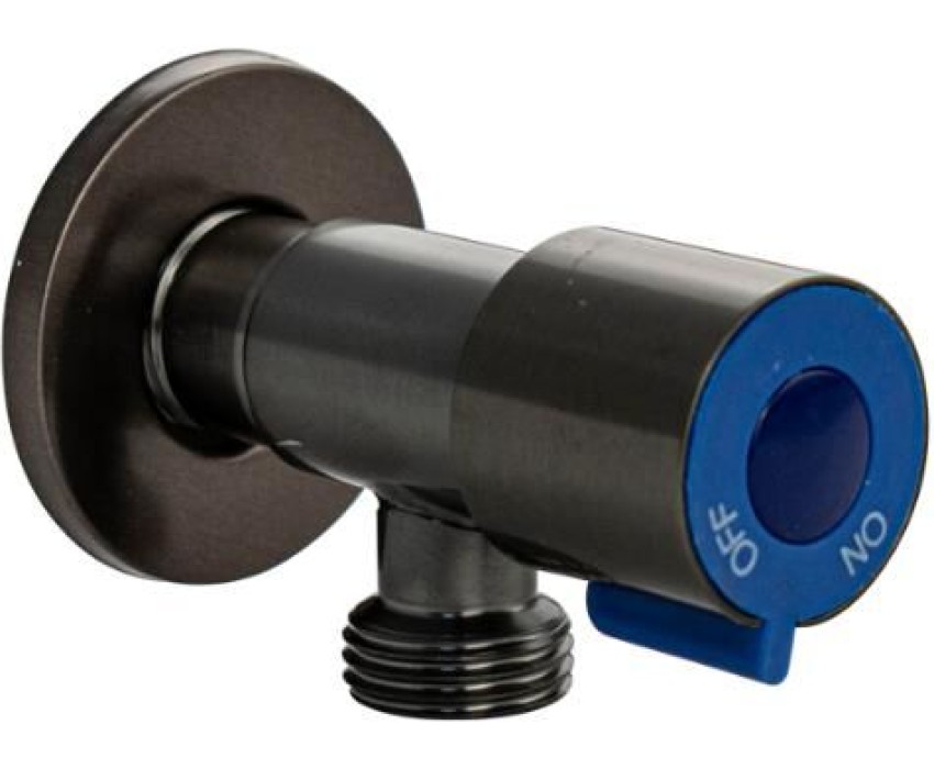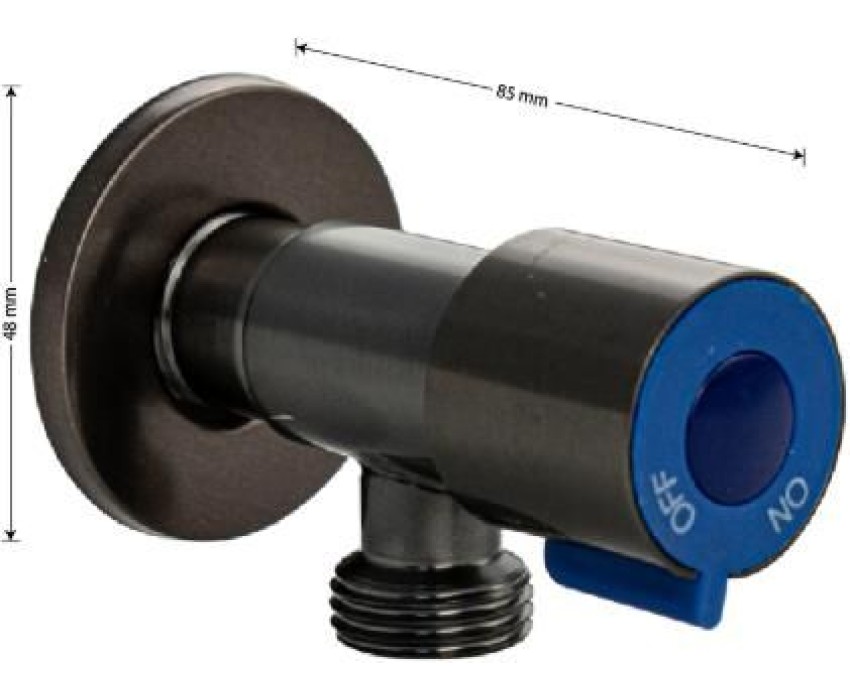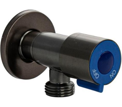 Кран металлокерамика угловой 1/2"х1/2" с чашкой, цвет графит наружняя резьба, корпус из нержавеющей стали марки SUS 304, ручка с синей вставкой поворот на 90˚, предназначен для подключения к водопроводной сети санитарных приборов (смывных бачков, стиральных и посудомоечных машин, лейки биде и пр.) с помощью гибких соединителей с накидной гайкой. Позволяет перекрывать подачу воды к конкретному потребителю. Габаритные размеры: длина 85 мм, диаметр посадочного седла 48 мм, длина резьбы 20 мм. Вес - 0,15 кг, объём - 0,0002 м3. В комплекте кран, чашка