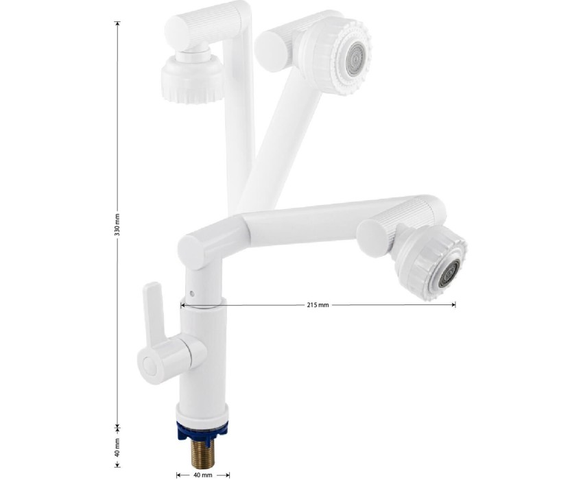 Кран на одну воду для кухни и раковины, с поворотным изливом и аэратором из высокопрочного АБС пластика. Крепление резьба - гайка. Кранбукса м/к, ручка - флажок, поворот на 90˚. Габаритные размеры: высота 330 мм, длина 215 мм, диаметр посадочного седла 40 мм, длина резьбы 40 мм. Вес - 0.51 кг, объём - 0.003 м3. В комплекте корпус, прокладка