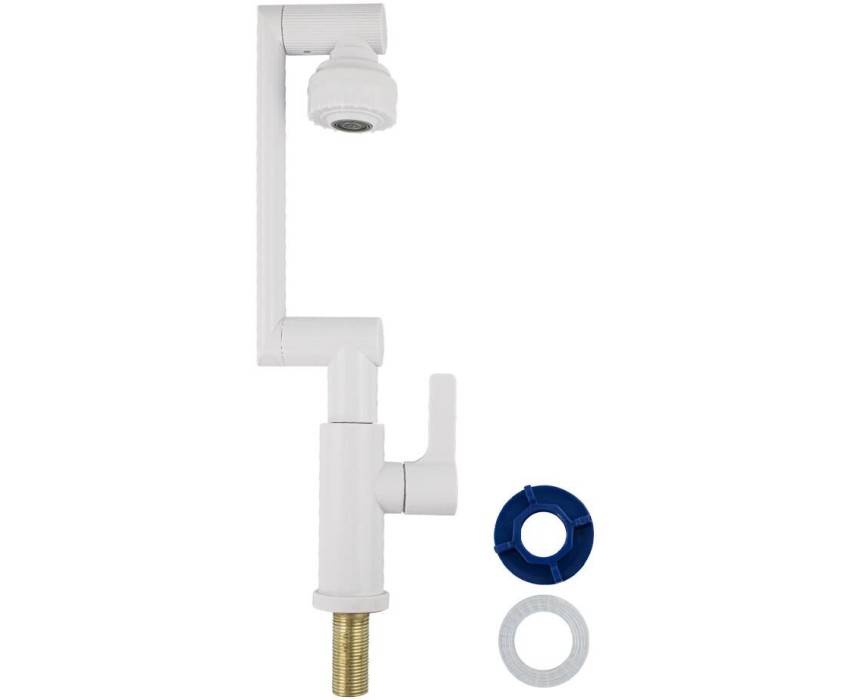 BRIMIX - Кран на одну воду, для кухонной мойки и раковины, металлокерамика, из высокопрочного пластика АБС, поворотный излив и аэратор, цвет БЕЛЫЙ. 6617