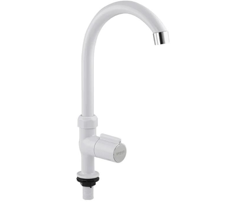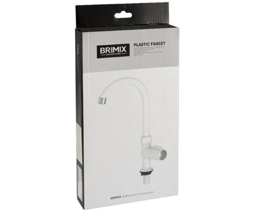 BRIMIX - Кран на одну воду, высокий излив, модель ЛЮКС, металлокерамика, из высокопрочного АБС пластика, цвет БЕЛЫЙ. 6628