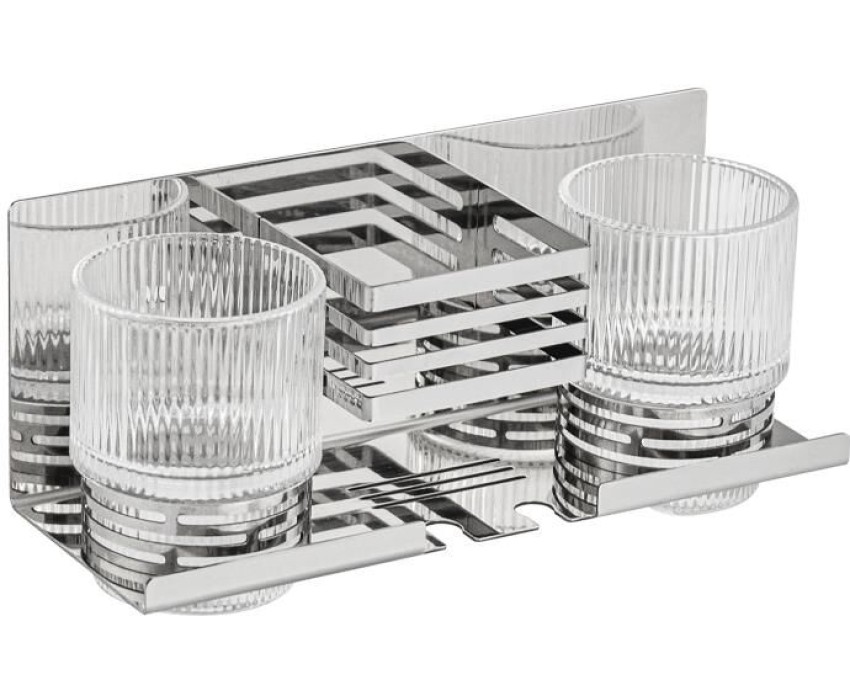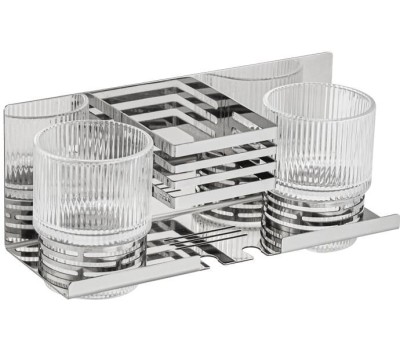 Аксессуары для ванной комнаты BRIMIX 1280-2 Полочка с двумя стеклянными стаканами и подставкой для зубных щёток, настенное крепление, из нержавеющей стали, цвет ХРОМ