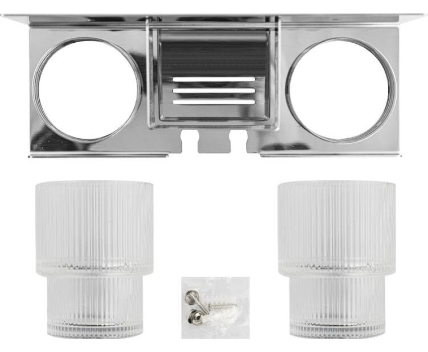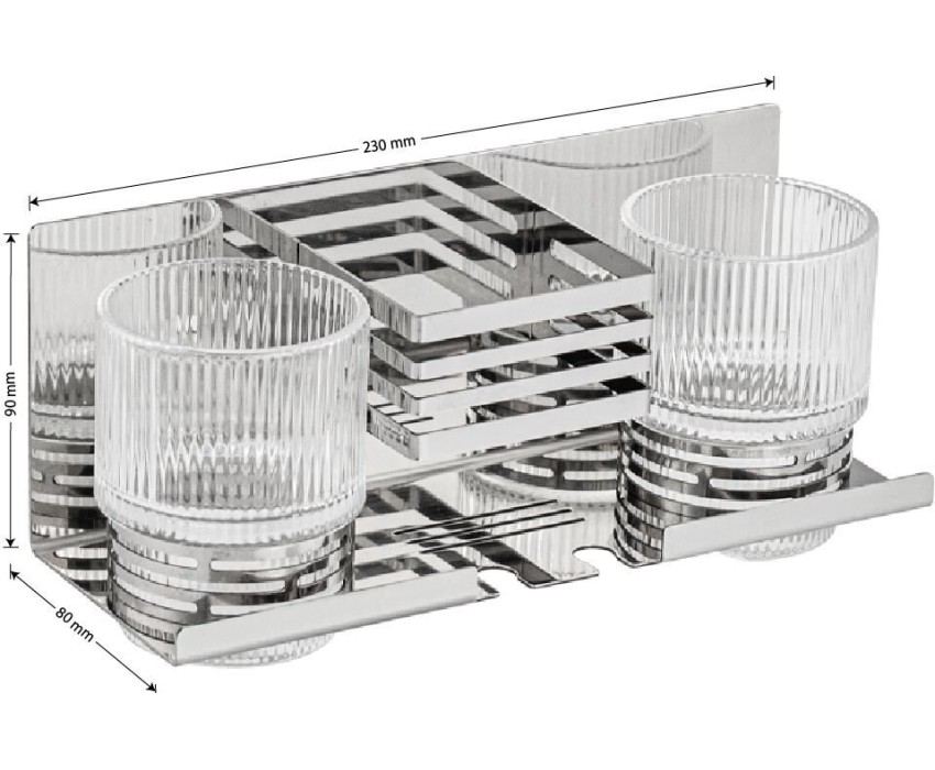 Полочка с двумя стеклянными стаканами и подставкой для зубных щёток, с креплением к стене. Изделие выполнено из стекла и полированной нержавеющей стали марки SUS 304, которые придает безупречный стильный вид и долговечность. Идеально подойдет не только для ванной, но и для кухни. Изделие крепится к стене с помощью дюбелей и саморезов (входят в комплект). Габаритные размеры: высота стакана 90 мм, диаметр 68 мм, ширина 230 мм, высота 90 мм, глубина 80 мм. Вес - 0,928 кг, объём - 0,0025 м3.