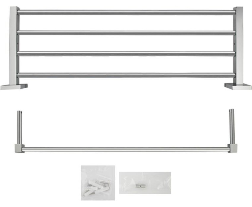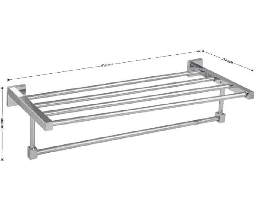 Полка для полотенца с опорой, большая, для ванной, привлекает своим современным дизайном, многофункциональностью и надежностью конструкции. Кухня, ванная, прихожая, кладовая или гардеробная - эта полка идеально подойдет везде. Металлическая полка оснащена дополнительной перекладиной. Хромированная нержавеющая сталь делает её устойчивой к влаге и исключает появление ржавчины. Полка для ванной функциональное и практичное решение для любого интерьера. Материал изготовления - ЦАМ. Хромированное покрытие очень стойко переносит истирания и обеспечивает безупречный вид изделия. Идеально подойдет не только для ванной, но и для кухни. Изделие крепится к стене с помощью дюбелей и саморезов (входят в комплект). Габаритные размеры: длина 610 мм, высота 140 мм, глубина 210 мм. основание мм. Вес - 1.12 кг, объём - 0.0091 м3.